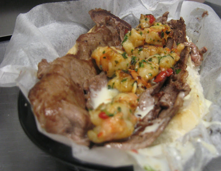 Today's picture is of our new Surf & Turf Cheesesteak. We add marinated, sauteed shrimp to our already awesome cheesesteak. This one is turning out to be a hit.